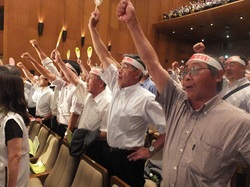 全国集会 ガンバロー三唱にて気勢をあげる参加者