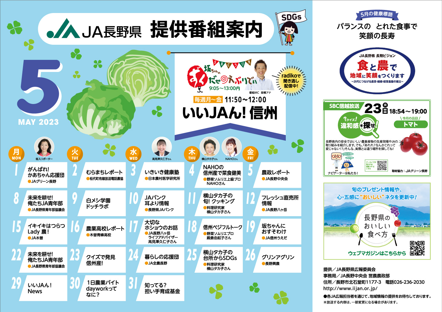 2023年5月のJA長野県提供番組案内案内を更新しました。