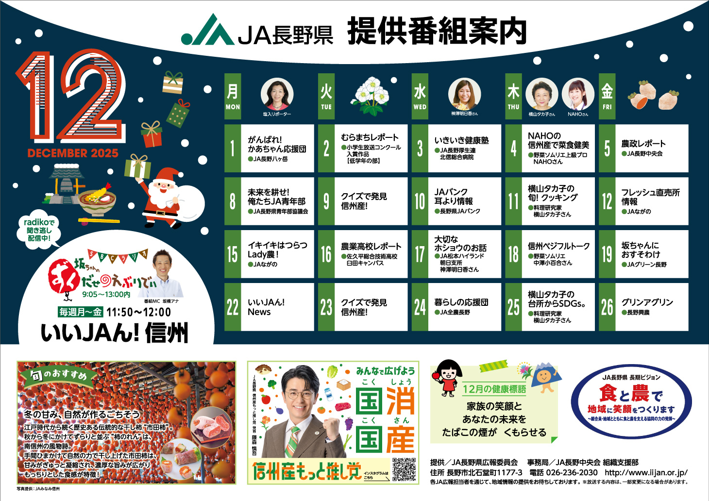 2025年12月のJA長野県提供番組案内を更新しました。