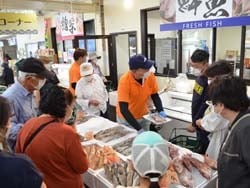 初日の24日には多くの来店者が開店前から列を作った。開店すると来店者は真っ先に鮮魚売り場へと進み、好みの海産物を購入していった。また、イカや魚に関して、希望者には腸抜きや3枚おろしといった手間のかかる下処理にも対応し大好評。2日間で海産物は完売し、あじ~な全体の2日間の売り上げも昨年同時期のフェアの売り上げを上回った。