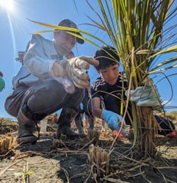 同アカデミーの選手は「稲刈りははじめてのことで、実際に手作業で収穫を行ってみて生産者の方の苦労を知ることができた。地元のお米をたくさん食べてトップになれるようがんばっていきたい」と意気込み、同法人の村上正彦代表理事組合長は「地元のチームを応援しようとはじめたこの活動も今年で10年の節目をむかえる。選手たちには農業に興味をもってもらうとともに、地元の農産物を食べてJ1昇格を目指して頑張ってもらいたい」と激励した。