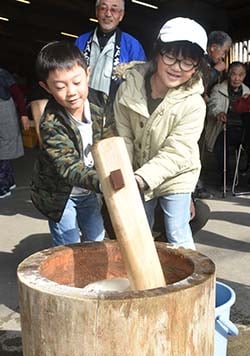 来場した地元の親子連れは「毎年この地区祭を心待ちにしている。今回は餅の振舞いを